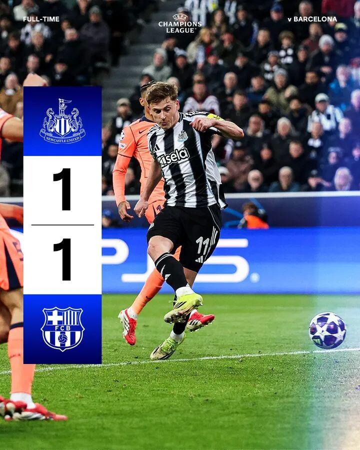 纽卡斯尔联1比1巴塞罗那