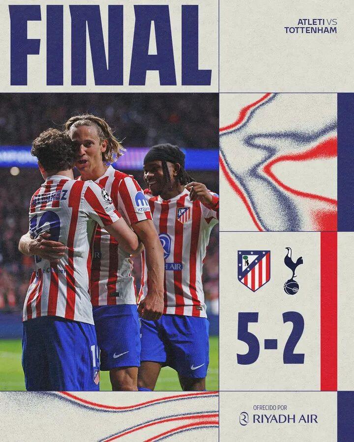 马德里竞技5比2托特纳姆热刺