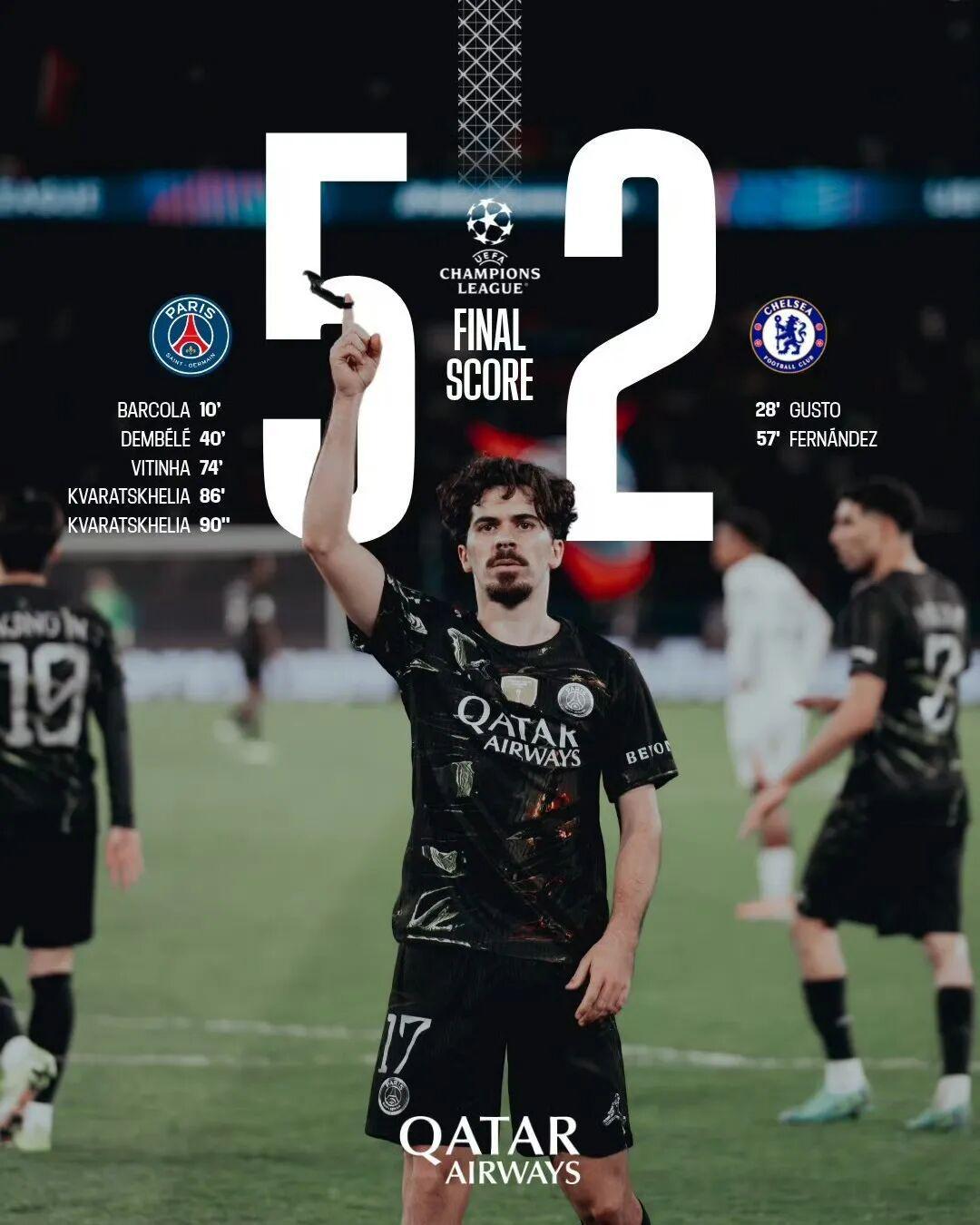 巴黎圣日耳曼5比2切尔西